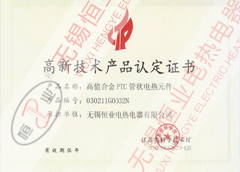 本公司的產品已全面通過電氣3C認證、全國防爆電氣產品生產許可證認證,且取得了國家防爆合格證、其中35項產品獲得國家專利證書、中國船用產品鑒定、英國勞式船級社認證、江蘇省科技成果鑒定。產品榮獲:12項江蘇省高新技術產品,8項產品列入國家火炬計劃。2002年合金PTC管狀電熱元件獲國家創新基金65萬人民幣。2005年硅橡膠電熱帶獲得國家創新基金75萬元人民幣。所生產的產品被無錫市評為“