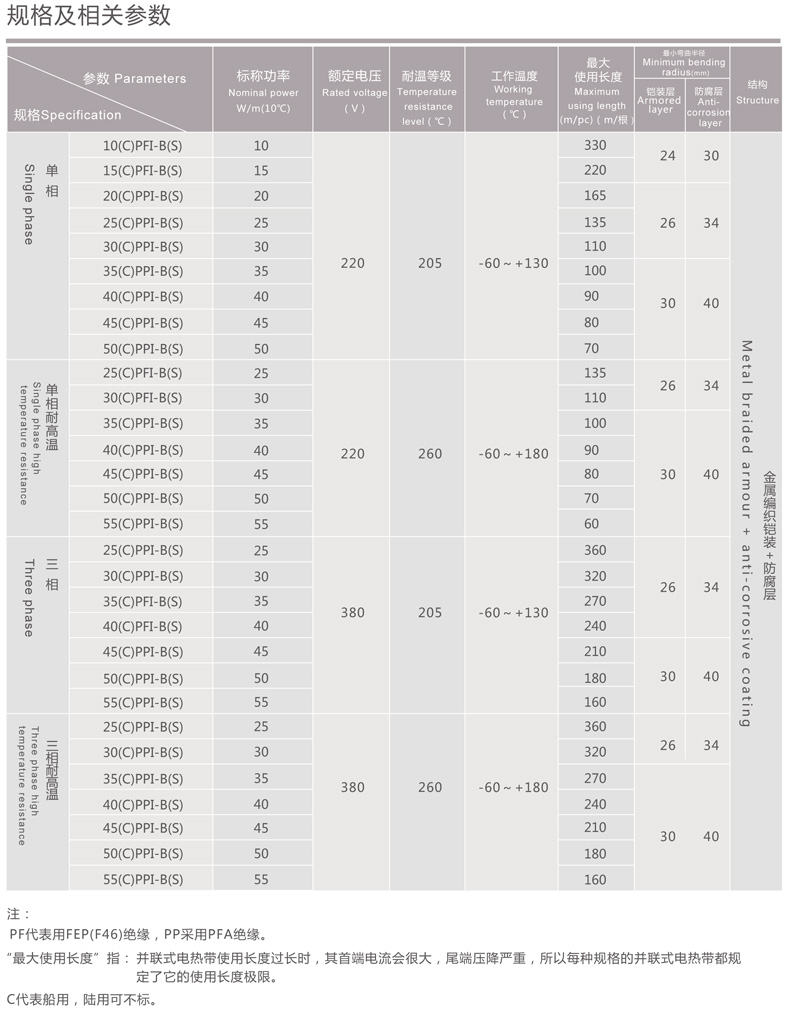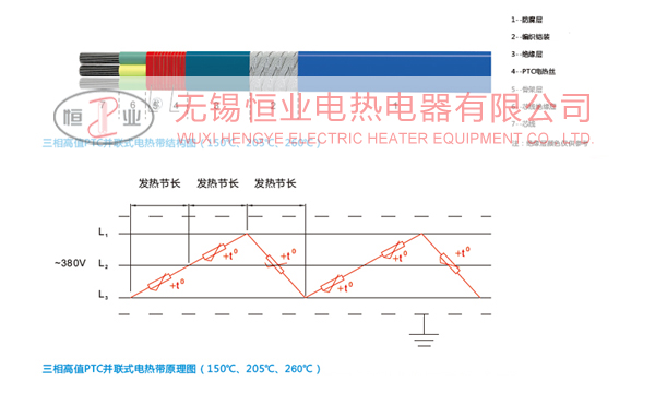 簡介: “ 高值P TC并聯式電熱帶” 又稱合金PTC并聯式電熱帶,曾獲國家發明專利證書,專利類型:發明專利,專利號:ZL95119695.2,證書號:第57856號,主要用于石油、化工、電力、醫藥機械等各行各業的管道、閥門、容器及管線的防凝、防凍、保溫和熱補償。取代傳統的蒸汽伴熱、熱水伴熱。 技術參數: ◆ 額定電壓:≤380V 50Hz/60Hz; ◆ 功率范圍:≤60W/m; ◆ 功率誤差范圍:≤±10%; ◆ 介電強度:單相1500V/min、三相1800V/min; ◆ 發熱特性:PTC調功; ◆ 功率調整系數:1.004(△T); ◆ 耐溫等級:150℃、205℃、260℃; ◆ 阻燃; ◆ 防爆等級:ExeⅡT4。 特點: 所謂“PTC”,是英文“Positive TemperatureCoefficient”的縮寫,譯意為“正溫度系數”,是國際上電熱元件材料研究的重要領域。“恒定電阻型”(又稱恒功率)電伴熱器材,不能調節 被伴熱體表面各處溫度,連續使用將導致在保溫層與被伴熱體之間的電伴熱器材在某些散熱不良的部位超溫燒壞。具有PTC特性的電伴熱器材,其發熱元件當溫度上升時,其自身阻值也隨之增加(發熱功率自動減小);當溫度下降時自身阻值隨之下降(發熱功率自動增加),它安裝在保溫層與被伴熱體之間工作,能動態跟蹤被伴熱體表面溫度,沿長度自動調節各處功率,使被伴熱體表面恒溫,且防止某些散熱不良的部位超溫引起燒壞。且有PTC特性的材料,既是電致熱元件,又是溫度測量元件和功率調整元件。 典型PTC材料簡介: 一、PTC合金(如鎳鈷鈮鉻錳Ni+Co+Nb+Cr+Mn,鐵鎳Fe+Ni,鎳鈷硅Ni+Co+Si等) ◆ 最高工作溫度<1000℃(實際工作溫度由絕緣材料耐溫等級決定); ◆ 無居里點,適用范圍廣; ◆ 電阻的PTC特性明顯,能滿足電伴熱器材工作要求; ◆ 無功率衰減現象,PTC特性不受使用時間影響; ◆ 有撓性,可彎曲; ◆ 起動沖擊電流小,開關容量小,使用壽命長。 二、高分子PTC材料(聚乙烯、聚偏氟乙烯等摻入導電碳黑制成的導電性復合材料) ◆ 耐溫等級65℃、85℃、105℃、135℃; ◆ 居里點限溫; ◆ 電阻的PTC特性很明顯; ◆ 隨使用時間的延長,高分子材料的老化將使發熱體失去記憶功能而功率衰減; ◆ 有較大的啟動沖擊電流,影響使用長度,大量使用須具備很大的開關容量。 三、陶瓷PTC材料(鈦酸鋇陶瓷摻入稀土元素制成的導電性復合材料) ◆ 耐溫等級<250℃; ◆ 居里點限溫; ◆ 電阻的PTC特性很明顯; ◆ 脆、不能彎曲; ◆ 隨使用時間的延長發熱功率會衰減,有效工作壽命幾千小時; ◆ 有較大的起動沖擊峰值電流,大量使用時需要很大的開關容量。 由此可見,鈦酸鋇陶瓷具有脆性,不適合做電伴熱器材的發熱元件,高分子導電復合材料,具有功率衰退和較大的起動沖擊電流且耐溫等級低,也不是制造電伴熱器材的理想材料。PTC合金電熱材料具有多方面的綜合特點,是制造高性能電伴熱器材的有效途徑和發展方向。